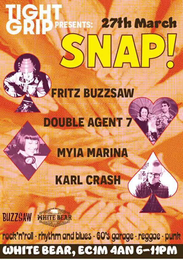 Fritz Buzzsaw, Double Agent 7, Myia Marina and Karl Crash take over for a high-energy night of garage, rhythm and blues, reggae and punk.